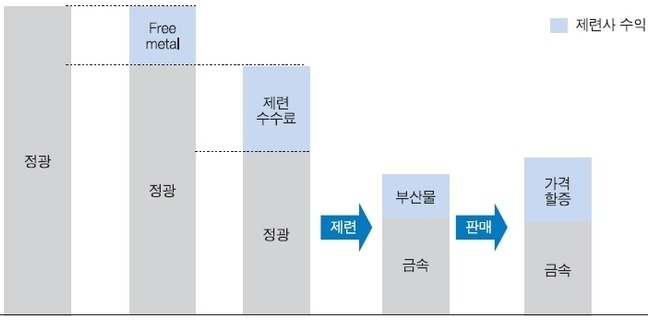 고려아연의 이익능력을 가늠하려면, 다음의 수익구조를 파악해야한다. 고려아연은 아연을 사와서 제련하고, 그 과정에서 얻는 수익들을 먹는 구조이다. 제련업의 수익구조와 같다(그림 3).