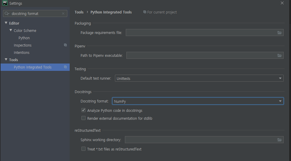 그런데, docstring이 pandas, 또는 numpy 에 익숙한데, 다른 포맷으로 디폴트로 세팅되어있어서 변경하는 법을 작성하고자한다.