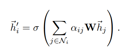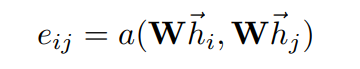 Attention coefficient: 아래와 같이 $h_{i}$(i번재 상태에서의 특징값)을 $h_{j}$번째의 상태에서의 특징값에 대해서 self-attention함. 결국 다음의 식에 따라, self-attention을 돌리고, 마지막에 attention weight을 곱하여, i번째의 상태의 그레프의 특징값을 반환