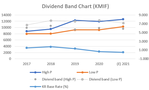 부록1. 역대 KMIF 배당율, DPS, 주가추이