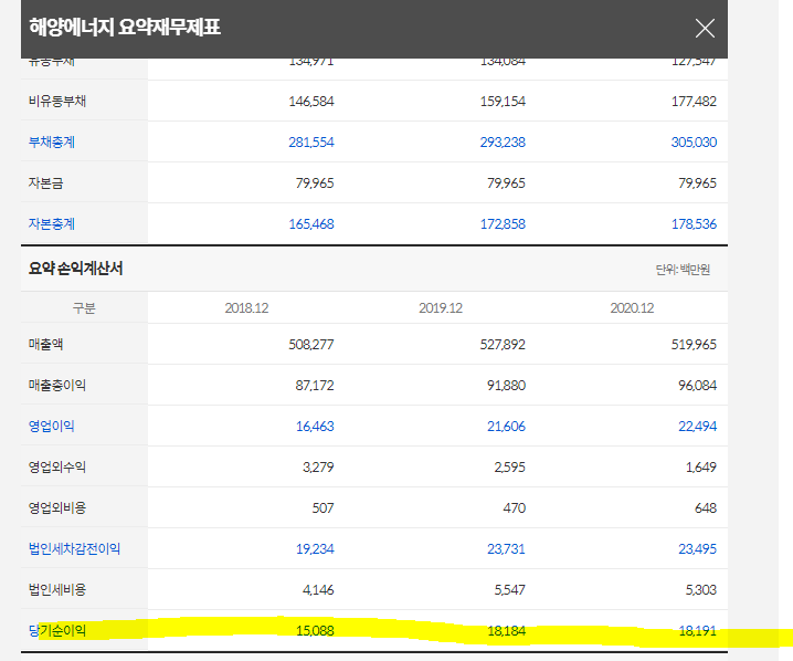 부록4. 해양에너지 최근 결산 Finantial sheet