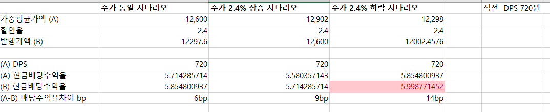 1. 2.4%할인율을 보고 신규발행의 차익을 위해, 신규매수가 증가 -> 주가 상승 -> 발행가액 상승 -> 고점 매수 구조로 될 수 있음.