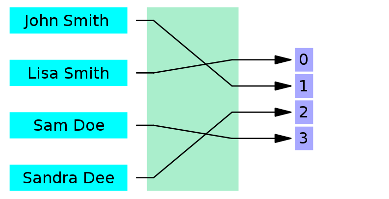 비둘기집의 원리: "차량등록번호", "휴대전화번호"처럼 차량수/휴대전화가가 등록할수 있는 번호의 개수를 초과하는 경우와 같은 원리. 비둘기집이 9개가 있고, 각 비둘기집에는 한 마리씩 비둘기가 있을 수 있다고 가정해보자. 만일 비둘기가 10마리가 있다면 어떻게될까? 9개의 집 중, 하나는 두마리가 들어가야한다. 마찬가지로 "고정길이 문자열을 반환하는 해시값은 유한하다. 따라서, 임의의 가변길이 문자열의 개수 > 반환할 수 있는 고정길이 문자열이기에, 겹칠 수 있다"는 말이다. 예를 들어, 영어 알파뱃 26개인데 정보를 10개의 고정길이 문자열로 반환하는 해시함수를 만들었다고 하자. 해시함수가 반환할 수 있는 값은 26의 10제곱이다. 그러나 입력값을 0부터 ZZZZZZZZZZZZZZZZZZZZZ까지 엄청나게 많은 은 알파벳과 숫자의 조합이라면? 매핑할 수 있는 값의 종류가 모자르다.