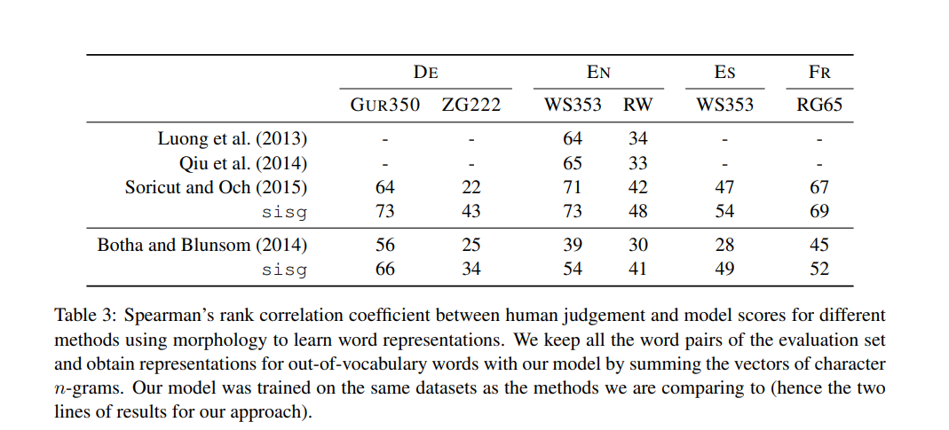 3. morphological representation을 진행했던 사전연구와 human judgment와 모델의 스코어관의 상관관계를 봤을때, 스피어만 상관계수가 높을수록 사람의 판단과 유사한 성능을 내서 높은 성능이라는 해석할 수 있다.
