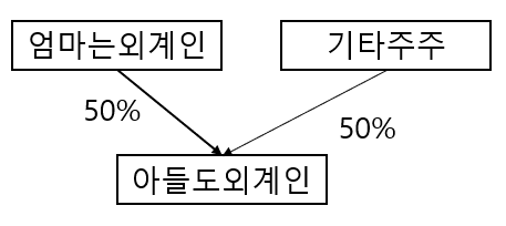 아래와 같이 "엄마는외계인"이라는 회사가 "아들도외계인"이라는 회사의 지분율 50%라고하자. 그리고 그외 기타주주들이 50%라고하자. 그러면 "엄마는외계인"이라는 회사가 모회사, "아들도외계인"이라는 회사는 자회사(종속기업)으로된다. 종속기업이기 때문에, 요약연결재무표에 "아들도외계인"의 자산과 부채를 합쳐서 계산하고, 자본에 지배기업의 소유지분만큼의 자본을 고려하여 계산한다. 예를들어, 엄마는 외계인이라는 회사의 자본이 100억 (별도회계상), 아들도외계인이라는 회사의 지분은 50억이었으면, 엄마는외계인의 지배기업의 소유지분은 100억(엄마꺼) + 아들도외계인 50억 * 지분율 50%으로, 총 125억이 지배기업의 소유지분이다.