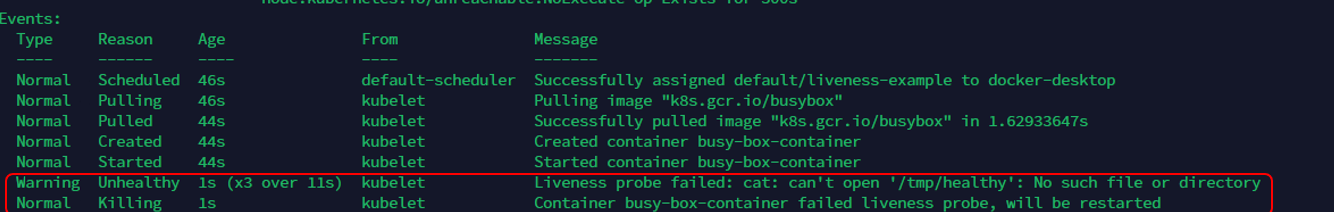 아래와 같이 exec livenessProbe가 실행을 몇 번해보다가, failthrehold만큼 실패하면 해당 컨테이너를 재시작한다.