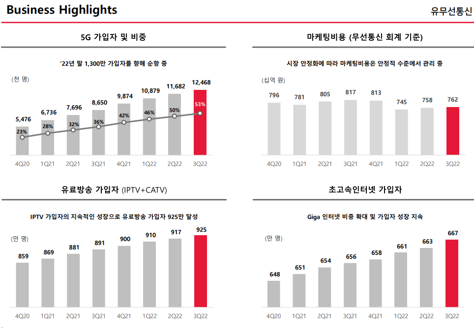 물론 정책변수가 있다. 윤정부에서 통신비절감을 위한 중간요금제 도입등으로 ARPU가 낮아질 수 있으나, 중간요금제가 통신 3사가 비슷한 요금제를 내어놓았는데, 애매한 선택폭이나온 입장에서는 큰 ARPU감소로 이어지진 않을 것 같다 [12].