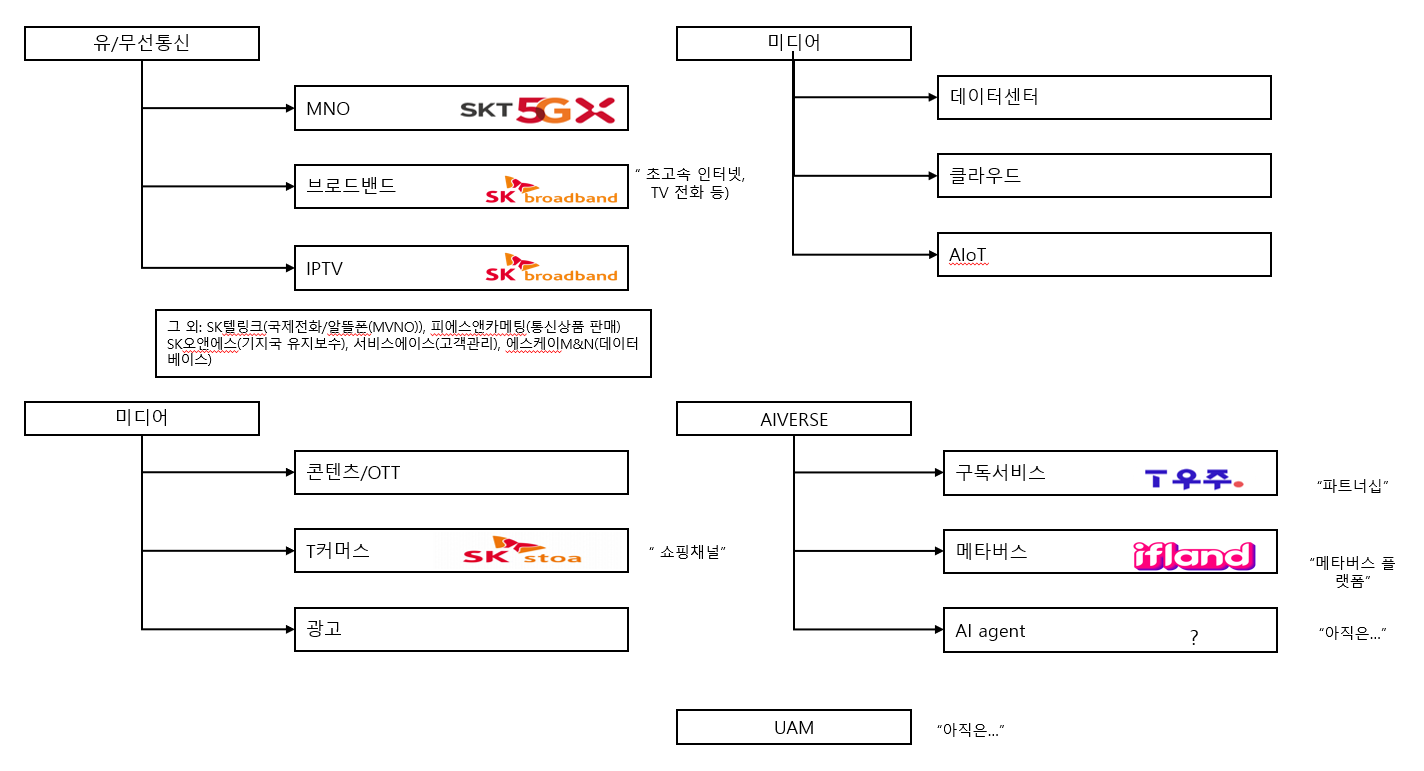 주요사업부문은? 4가지: 유무선통신 / 미디어 / 엔터프라이즈 / AIVERSE.