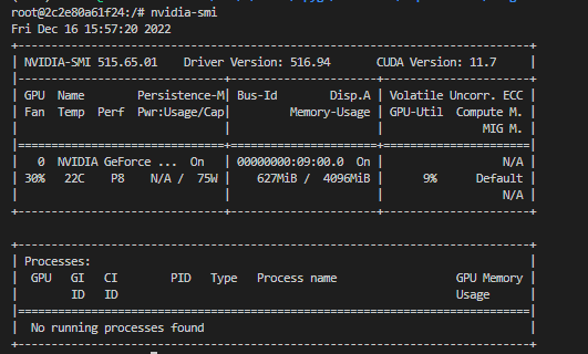 nvidia-smi명령어로 host graphic card을 사용할수 있는지 확인해본다.