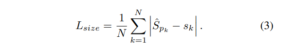 각 오브젝트가 어떤 클레스가 될지에 따라서 k가 달라질 수 있다는 것입니다. 하지만, 이 예측치를 계산하는데는 연산이 오래걸려서 그냥 단일의 개체의 사이즈로만 판단하도록 변경합니다. 그래서 사이즈을 의미하는 값의 차원이 다음과 같이 바뀝니다. $\hat{S} \in \mathbb{R}^{\frac{W}{R}\times\frac{H}{R}\times2}$.