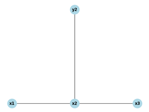 edges = [("x1", "x2", 0.9), ("x2", "x3", 0.1), ("y2", "x2", 0.1)]