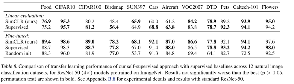사전작업(Pre-text)을 학습하는 경우, 이 모델을 fix하고 linear 모델만 단 경우는 여러 데이터셋에서 성능의 우위를 가리기어렵지만, 이를 함께 fine-tuning하는 경우 지도학습모다 더 좋은 성능을 기대할 수 있었습니다.