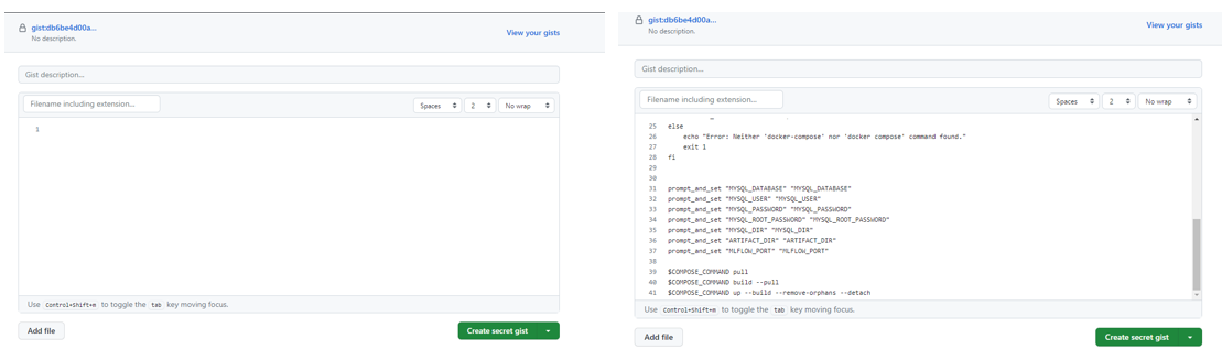 - Gist 생성: 먼저 코드 조각을 GitHub Gist에 업로드합니다. 이를 위해 GitHub에 로그인하고 "New gist" 버튼을 클릭하거나, 기존 gist를 수정하여 코드를 추가합니다.