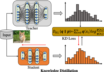 큰 모델의 model confidence (softmax output)은 이 큰 모델이 학습한 지식을 담고있지 않을까라는 가설로 시작됩니다. 큰 모델의 결과물(증류된 정보)을 이용해서 작은 모델을 간단히 학습할 수 있지 않을까라는 생각입니다 [1]. 즉 큰 모델의지식(knowledge)이 model confidences 분포이겠구나라는 것입니다.