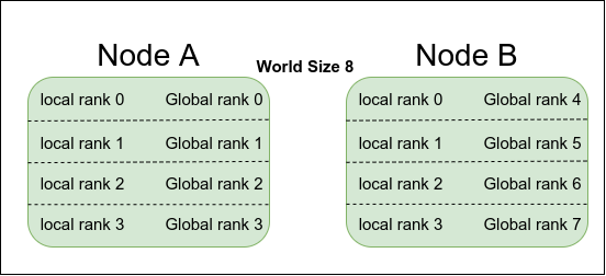 - local rank: 각 노드에서 고율한 rank을 의미.