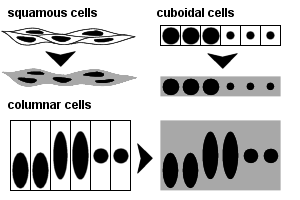 상피조직의 세포 형태(높이)에 따른 분류