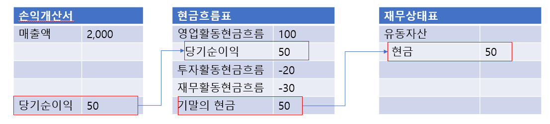 각 재무제표에서의 연결지점은 아래와 같음