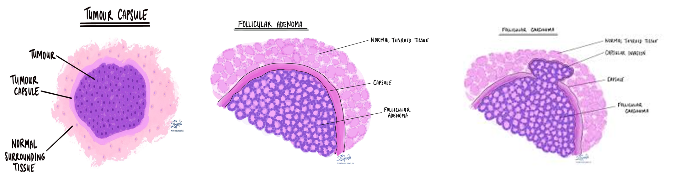 Q. " Minimally invasive follicular carcinoma is an encapsulated tumor with microscopic penetration of the tumor capsule without vascular invasion" 캡슐내에 있는데 캡슐침투?뭔말?