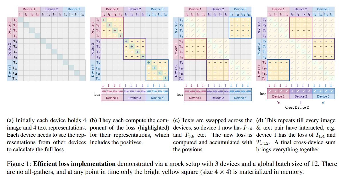 Data parallelism가능. 각 장치에서 순회하면서 전체유사도를 계산할수 있고, 마지막에 reduce + gather을 하면되어서 메모리효율적 (즉, all gather 필요없음)
