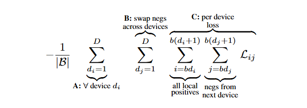 Data parallelism가능. 각 장치에서 순회하면서 전체유사도를 계산할수 있고, 마지막에 reduce + gather을 하면되어서 메모리효율적 (즉, all gather 필요없음)