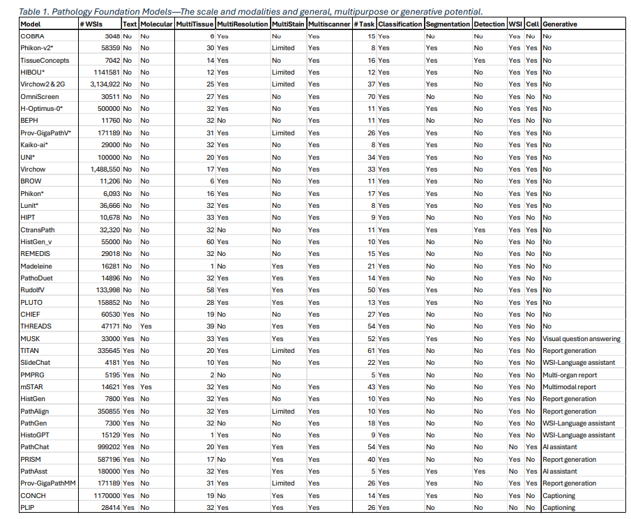 Table 1.최근 40개의 FM. 초기에는 contrastive learning으로 사용했는데 최근에는 generative architecture로 변화중.